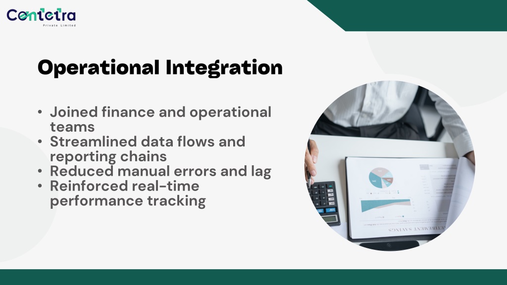 Operational Integration • Joined finance and operational teams • Streamlined data flows and reporting chains • Reduced manual errors and lag • Reinforced real-time performance tracking
