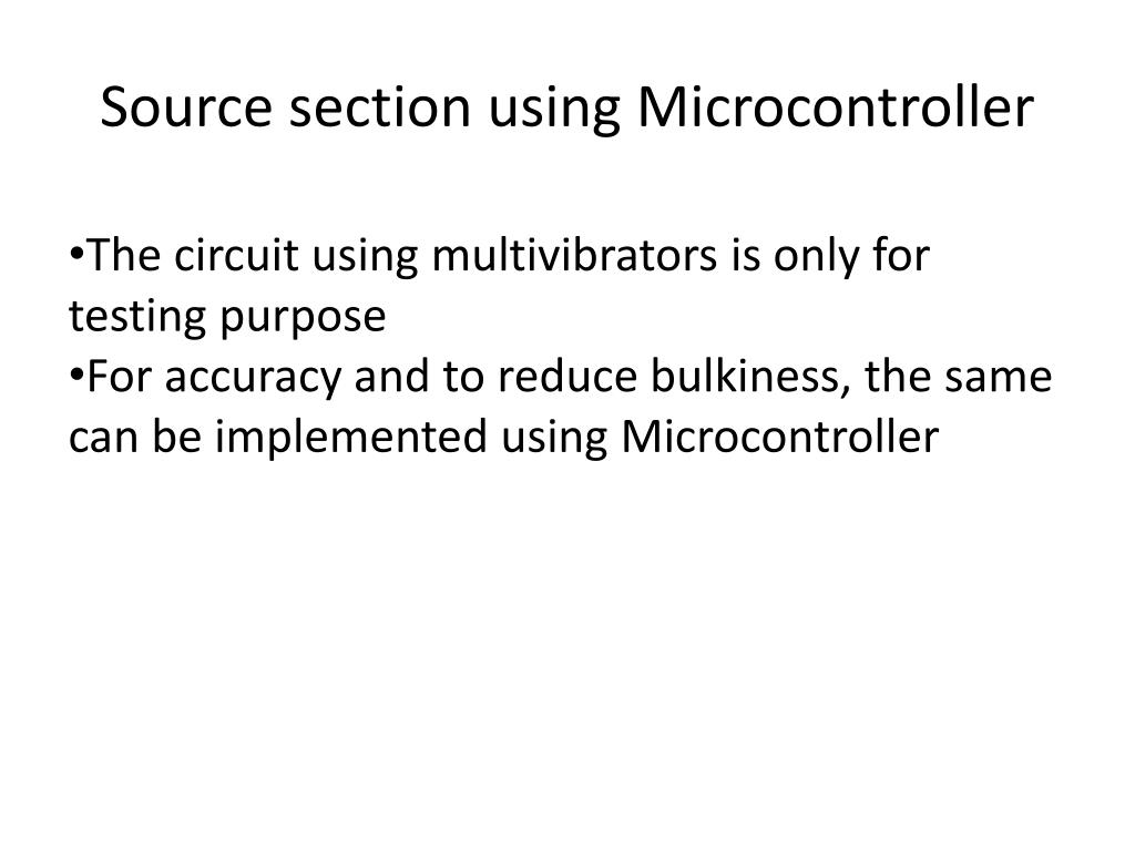 Source section using Microcontroller • The circuit using multivibrators is only for testing purpose • For accuracy and to reduce bulkiness, the same can be implemented using Microcontroller