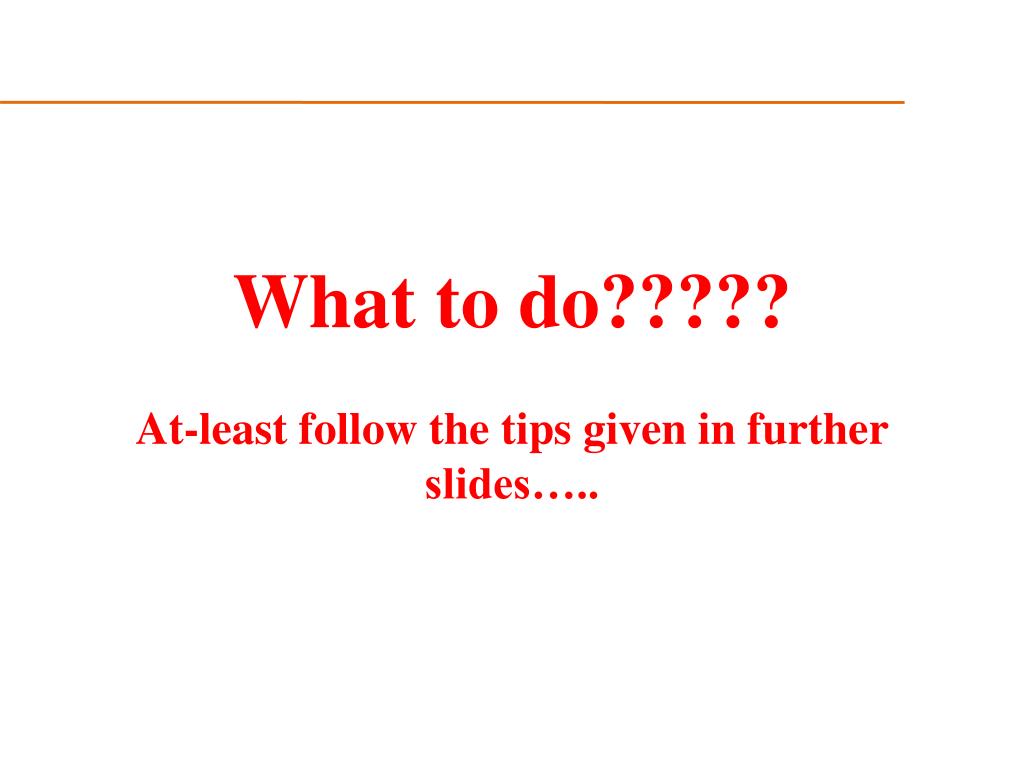 What to do?????At-least follow the tips given in further slides…..