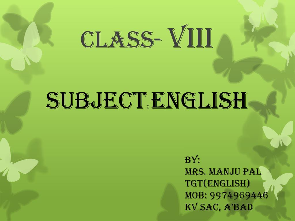 SUBJECT: ENGLISH CLASS- VIII By: Mrs. Manju Pal TGT(English) Mob: 9974969446 KV SAC, A’bad