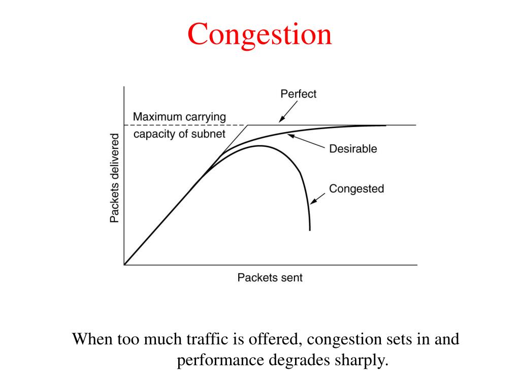 Congestion When too much traffic is offered, congestion sets in and performance degrades sharply.