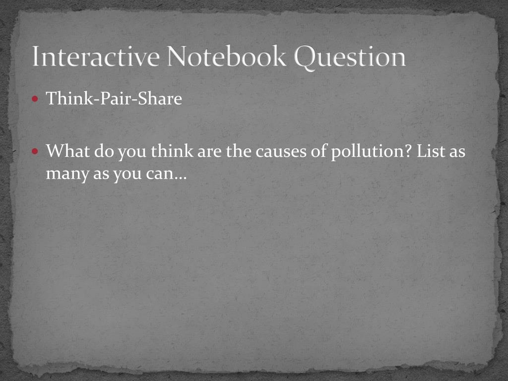 Interactive Notebook Question • Think-Pair-Share • What do you think are the causes of pollution? List as many as you can…