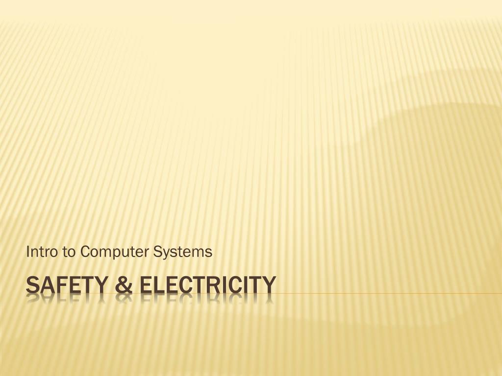 Intro to Computer Systems. Safety & Electricity. # 1 ELECTRICITY A Computer that is plugged in and turned on will not electrocute you when touching any of the boards or chips inside the case BUT . . . There are 3 components that do hold a charge big enough to hurt you.