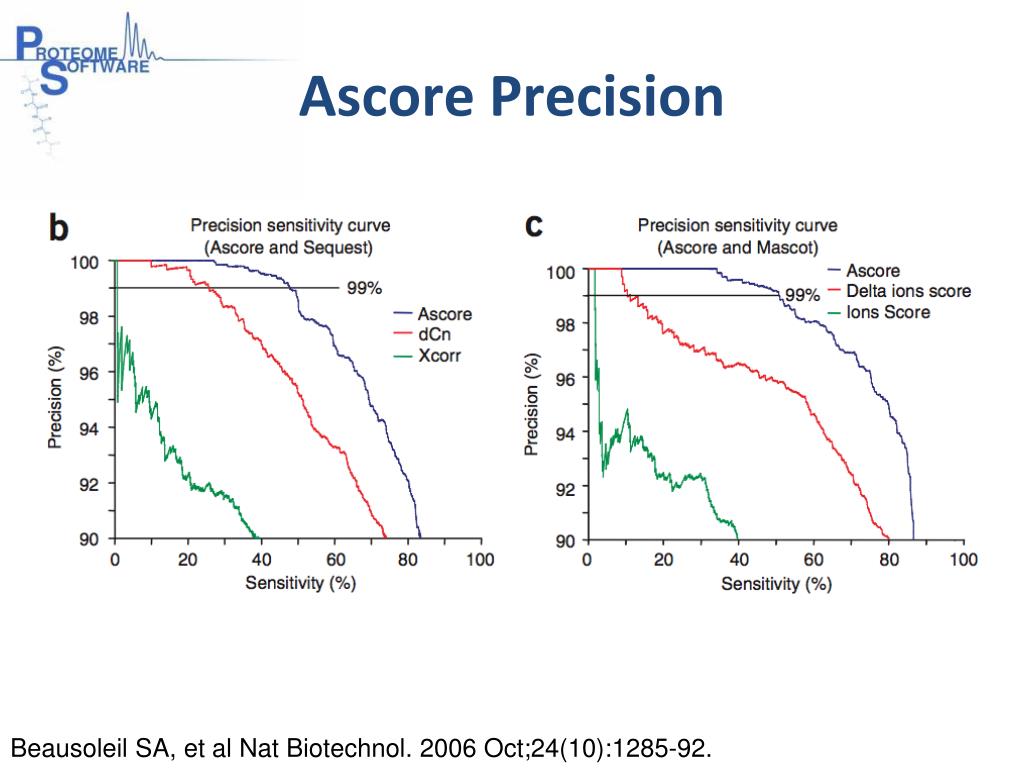 Ascore Explained. Brian C. Searle Proteome Software Inc. Portland, Oregon USA Brian.Searle@ProteomeSoftware.com A probability-based approach for high-throughput protein phosphorylation analysis and site localization. Beausoleil SA, Villén J, Gerber SA, Rush J, Gygi SP.
