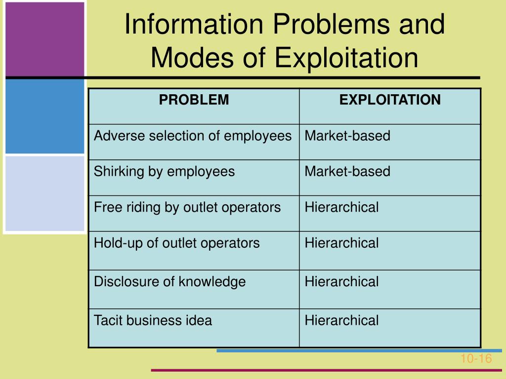 Benefits of Market-Based Methods Contractual modes of opportunity exploitation can protect entrepreneurs from • Adverse selection • Shirking
