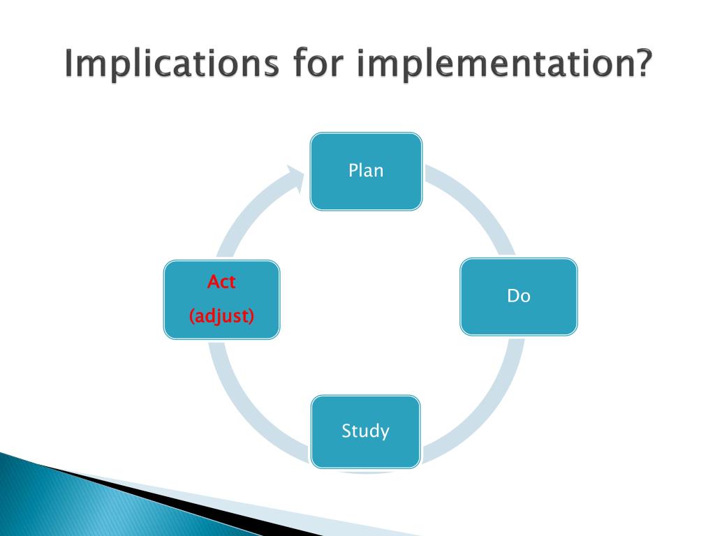 Some general implications • Use positive reports to promote buy-in from stakeholders • Use reports of challenges to trouble shoot and strengthen preparation of new counties • Increase attention to site preparation • Enhance preparation and support of front line workers
