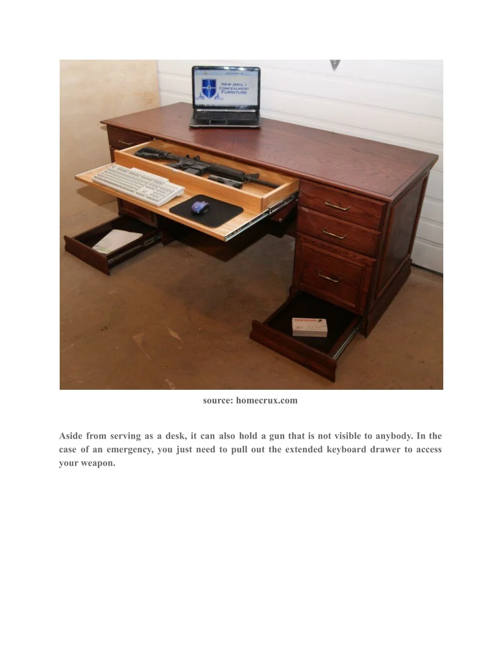 source: homecrux.com Aside from serving as a desk, it can also hold a gun that is not visible to anybody. In the case of an emergency, you just need to pull out the extended keyboard drawer to access your weapon.