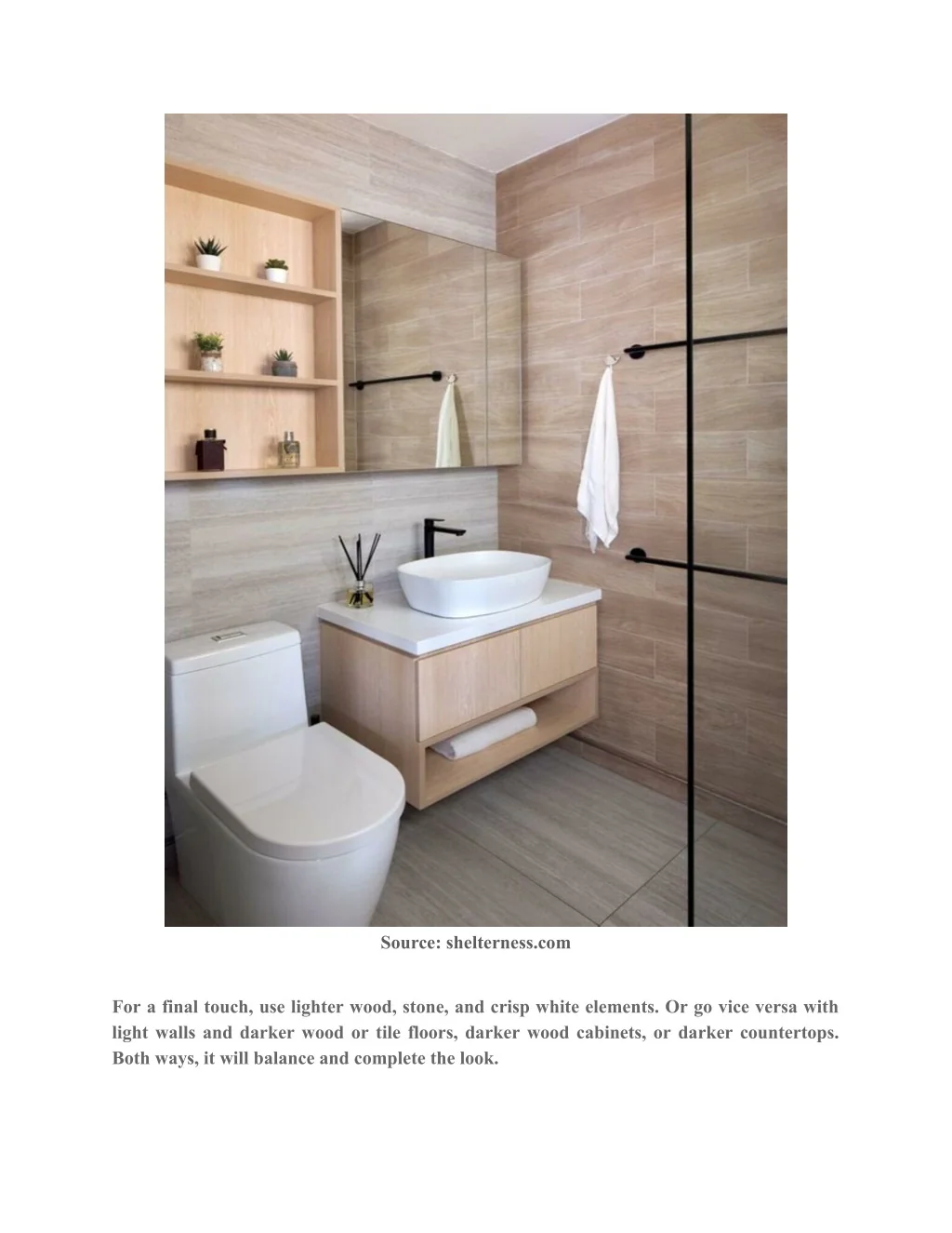 Source: shelterness.com For a final touch, use lighter wood, stone, and crisp white elements. Or go vice versa with light walls and darker wood or tile floors, darker wood cabinets, or darker countertops. Both ways, it will balance and complete the look.