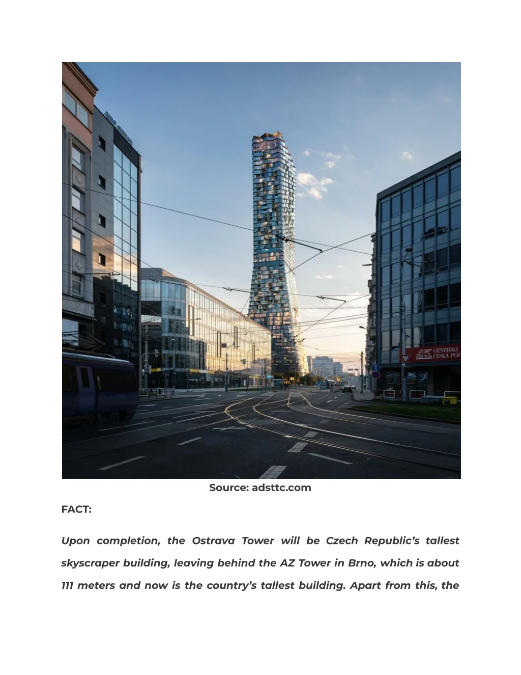 Source: adsttc.com FACT: Upon completion, the Ostrava Tower will be Czech Republic’s tallest skyscraper building, leaving behind the AZ Tower in Brno, which is about 111 meters and now is the country’s tallest building. Apart from this, the