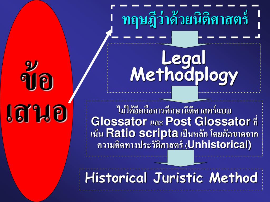 ข้อ เสนอ ทฤษฎีว่าด้วยนิติศาสตร์ Legal Methodplogy ไม่ได้ยึดถือการศึกษานิติศาสตร์แบบ Glossator และ Post Glossator ที่เน้น Ratio scripta เป็นหลัก โดยตัดขาดจากความคิดทางประวัติศาสตร์ (Unhistorical) Historical Juristic Method