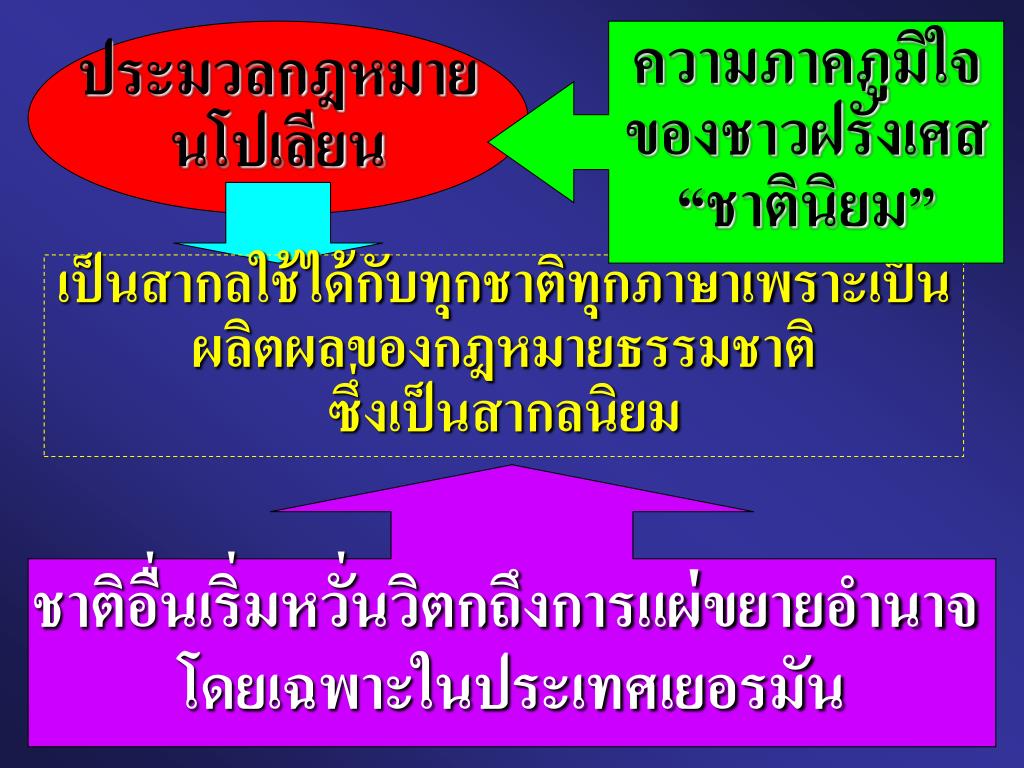 นิติปรัชญา : แนวคิดของสำนักกฎหมายประวัติศาสตร์. อาจารย์อิทธิพล ปรีติประสงค์ คณะนิติศาสตร์ มหาวิทยาลัยอีสเทิร์นเอเชีย วันที่ ๒๘ สิงหาคม พ.ศ.๒๕๔๗. ประมวลกฎหมาย นโปเลียน. ความภาคภูมิใจ ของชาวฝรั่งเศส “ชาตินิยม”.