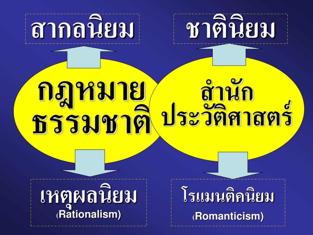 สากลนิยม ชาตินิยม สำนัก ประวัติศาสตร์ กฎหมาย ธรรมชาติ เหตุผลนิยม (Rationalism) โรแมนติคนิยม(Romanticism)