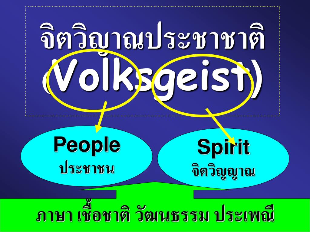 จิตวิญาณประชาชาติ(Volksgeist)จิตวิญาณประชาชาติ(Volksgeist) People ประชาชน Spirit จิตวิญญาณ ภาษา เชื้อชาติ วัฒนธรรม ประเพณี