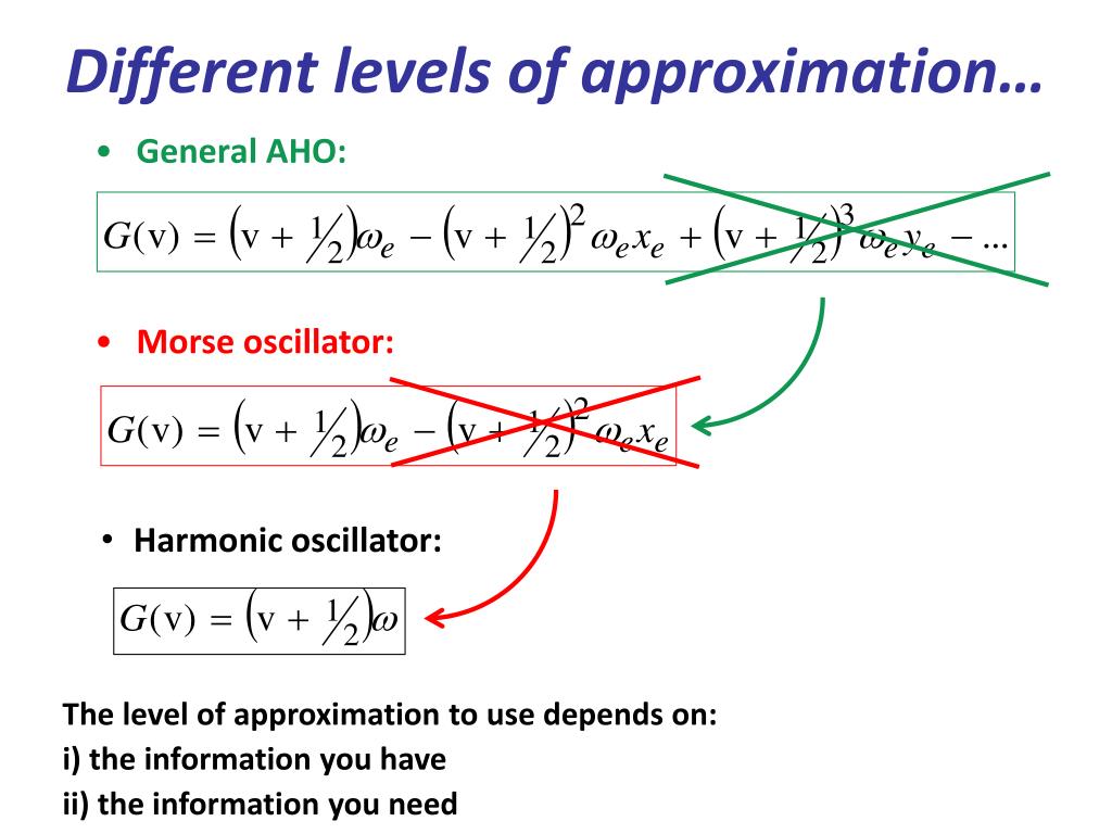 Different levels of approximation… • General AHO: • Morse oscillator: • Harmonic oscillator: The level of approximation to use depends on: i) the information you have ii) the information you need