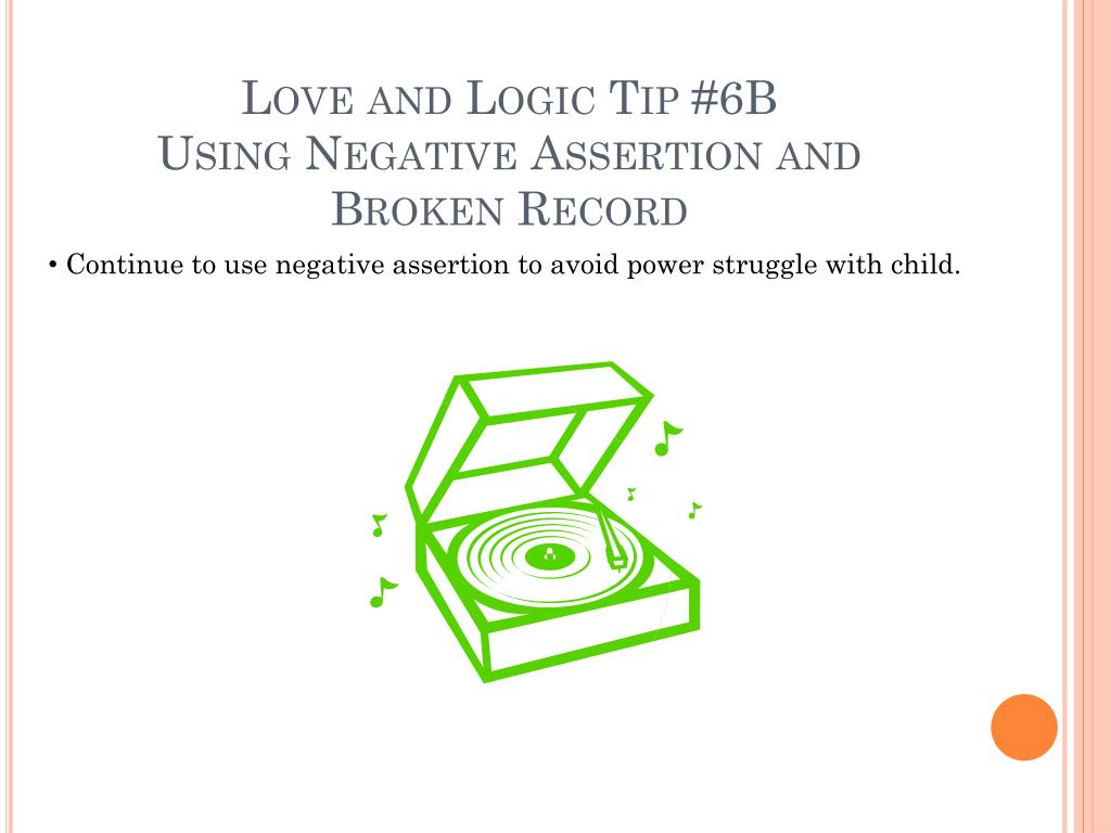 Love and Logic Tip #6BUsing Negative Assertion and Broken Record • Continue to use negative assertion to avoid power struggle with child.