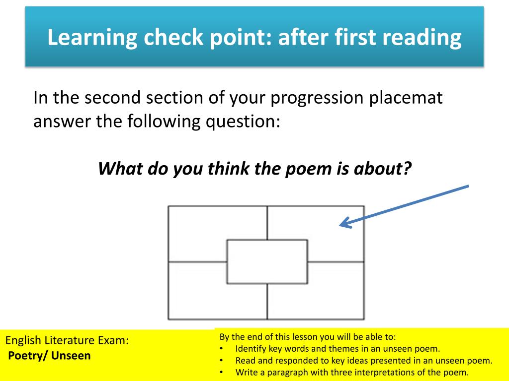 English Literature Exam: Poetry/ Unseen. By the end of this lesson you will be able to: Identify key words and themes in an unseen poem. Read and responded to key ideas presented in an unseen poem. Write a paragraph with three interpretations of the poem. .