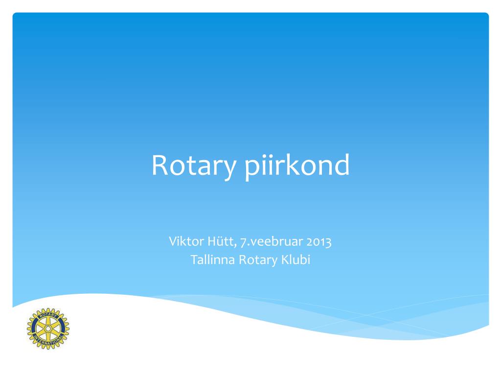 Rotary piirkond . Viktor Hütt, 7.veebruar 2013 Tallinna Rotary Klubi. Piirkonna mõiste . p iirkond ( District ) on geograafiline territoorium, kuhu kuuluvad kõik seal tegutsevad rotary-klubid