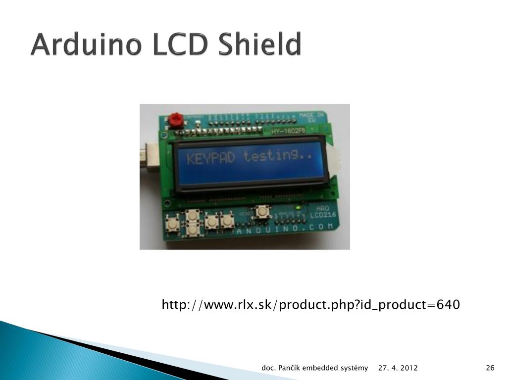 Arduino LCD Shield http://www.rlx.sk/product.php?id_product=640 doc. Pančík embedded systémy