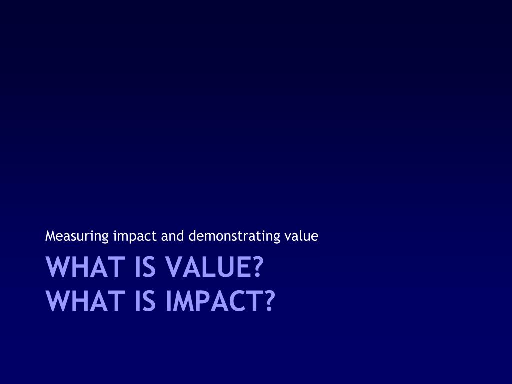 RIN Report on academic library challenges “ … there is a strong feeling among senior librarians that they have failed effectively to communicate the value of their services [and]…in rigorously demonstrating the value of their activities” “The focus of performance indicators up to now has tended to be on inputs and outputs … rather than addressing the much harder issues relating to impact and value. … we believe it is essential that more work is done to analyse the relationships between library activities … and learning and research outcomes … .”