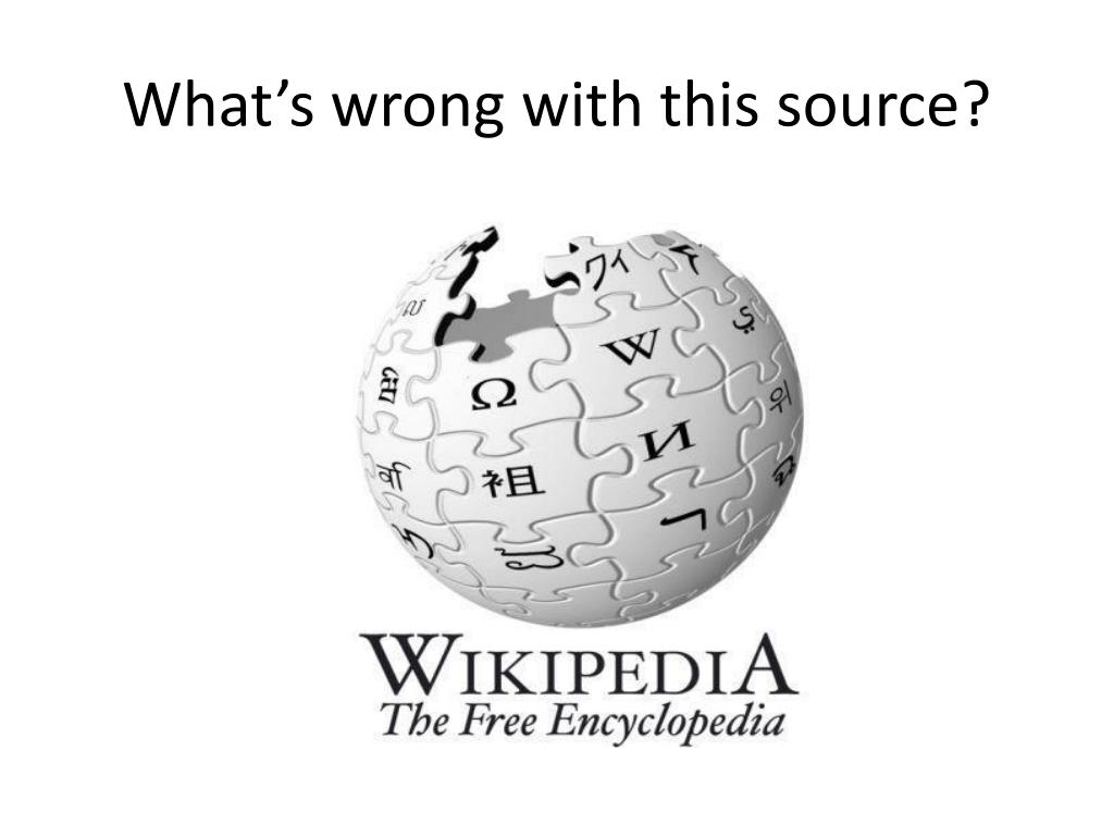 Wikipedia can be changed at any time by anyone! • No reason to ignore it (don’t be crazy!) • But never as your only source. • The sources linked at the bottom are a rich trove of reliable information.