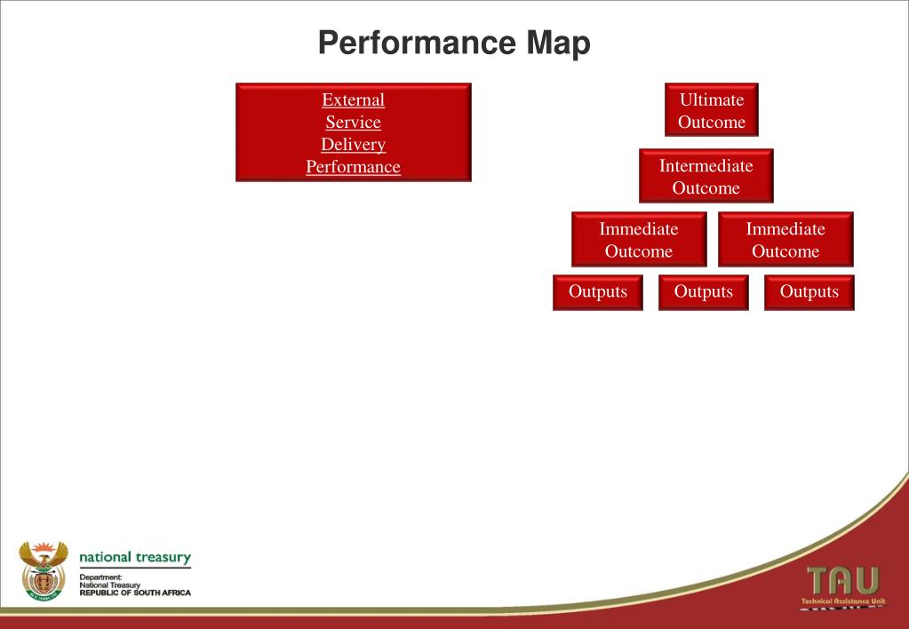 Performance Map External Service Delivery Performance Ultimate Outcome Intermediate Outcome Immediate Outcome Immediate Outcome Outputs Outputs Outputs