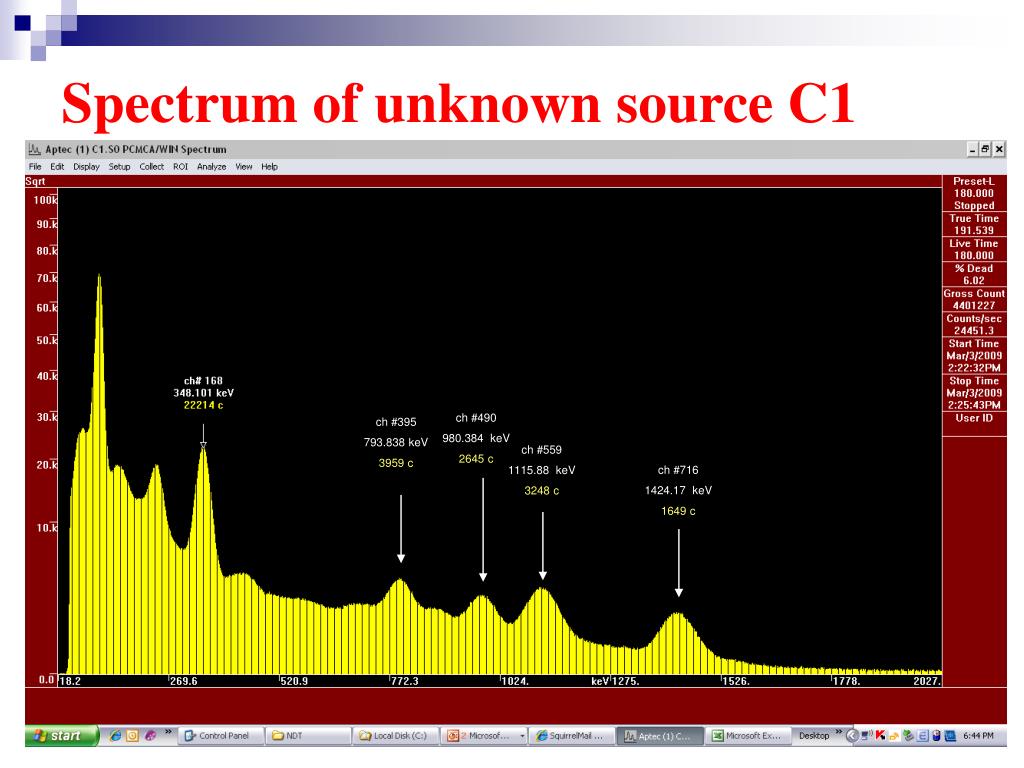 Spectrum of unknown source C1 ch #490 980.384 keV 2645 c ch #395 793.838 keV 3959 c ch #559 1115.88 keV 3248 c ch #716 1424.17 keV 1649 c