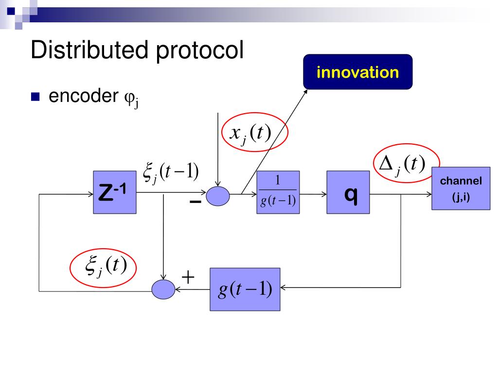 Distributed protocol • encoder φj q Z-1 channel (j,i) scaling function