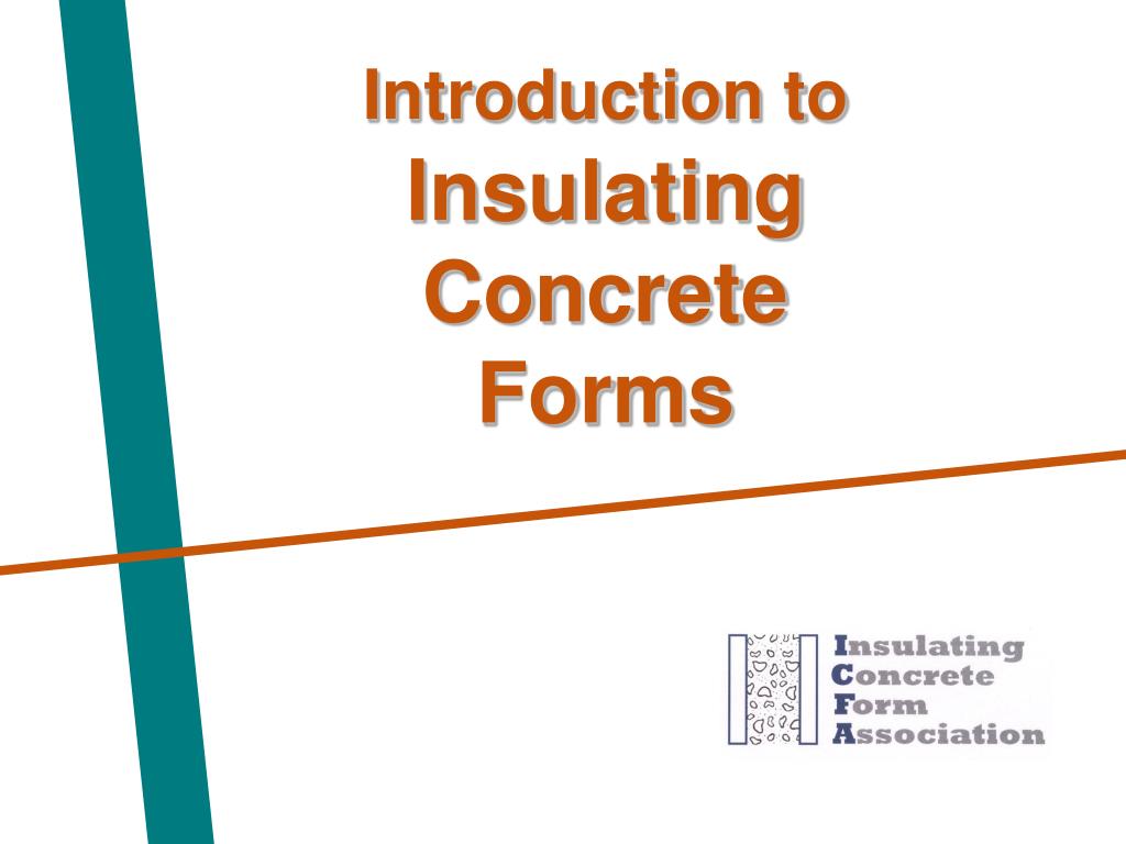Introduction to Insulating Concrete Forms. Joseph Lyman Executive Director, ICFA. Wall Functions. Structure Insulation Finish Attachment Chase for utilities. Typical ICF Wall. 100% insulation (R- 18 to 22) 100% monolithic structure Integral furring Fully insulated chase cavity.