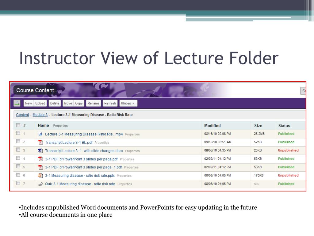 Instructor View of Lecture Folder • Includes unpublished Word documents and PowerPoints for easy updating in the future • All course documents in one place
