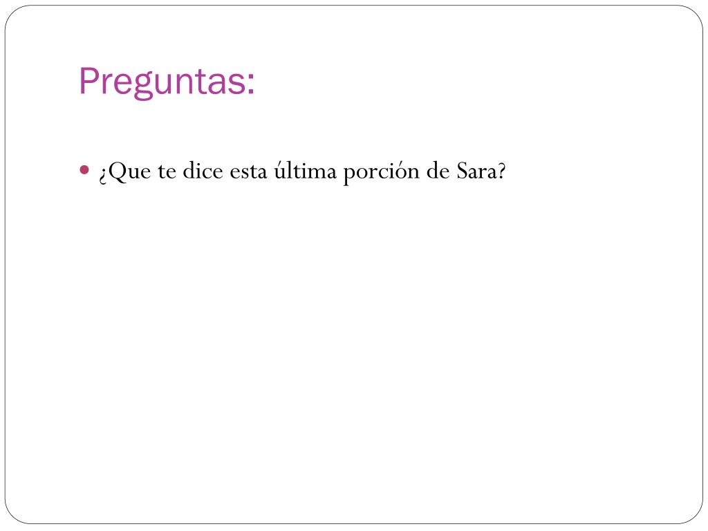 Preguntas: • ¿Quete dice estaúltimaporción de Sara?