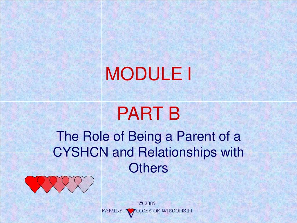 MODULEIPART B The Role of Being a Parent of a CYSHCN and Relationships with Others