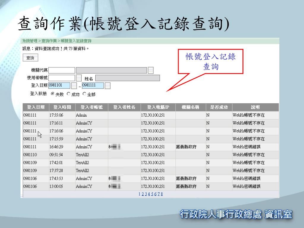 查詢作業(帳號登入記錄查詢) 帳號登入記錄查詢
