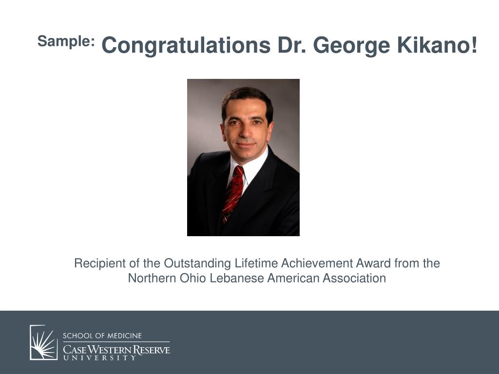 Sample: Congratulations Dr. George Kikano! Recipient of the Outstanding Lifetime Achievement Award from the Northern Ohio Lebanese American Association