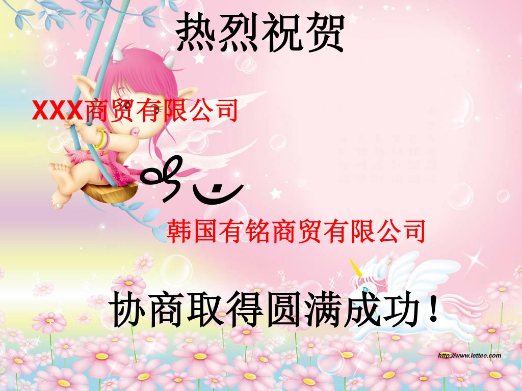 热烈祝贺 XXX商贸有限公司 he 韩国有铭商贸有限公司 协商取得圆满成功!