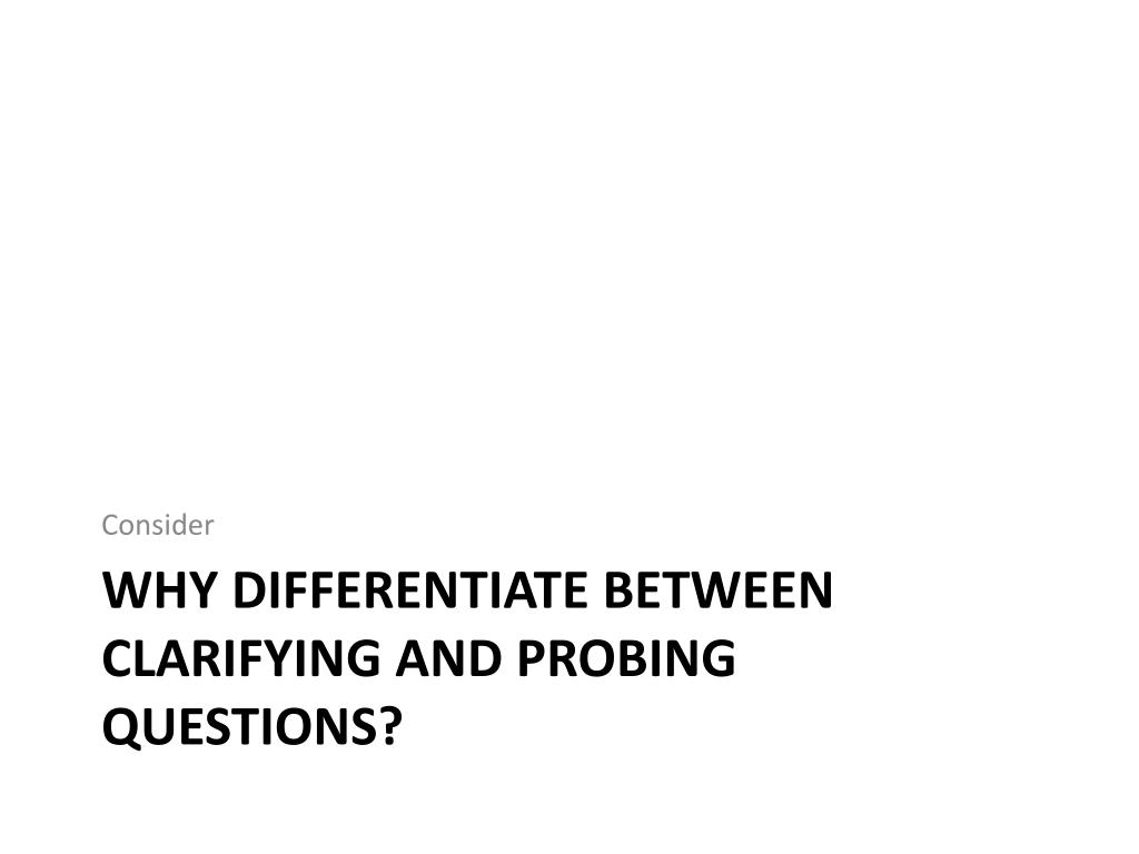 Consider Why differentiate between clarifying and probing questions?