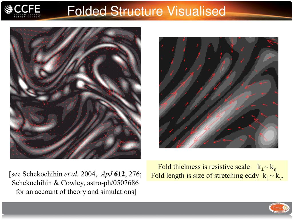 Folded Structure Visualised Fold thickness is resistive scale k~ k Fold length is size of stretching eddy k|| ~ k. [see Schekochihin et al. 2004, ApJ612, 276; Schekochihin & Cowley, astro-ph/0507686 for an account of theory and simulations]