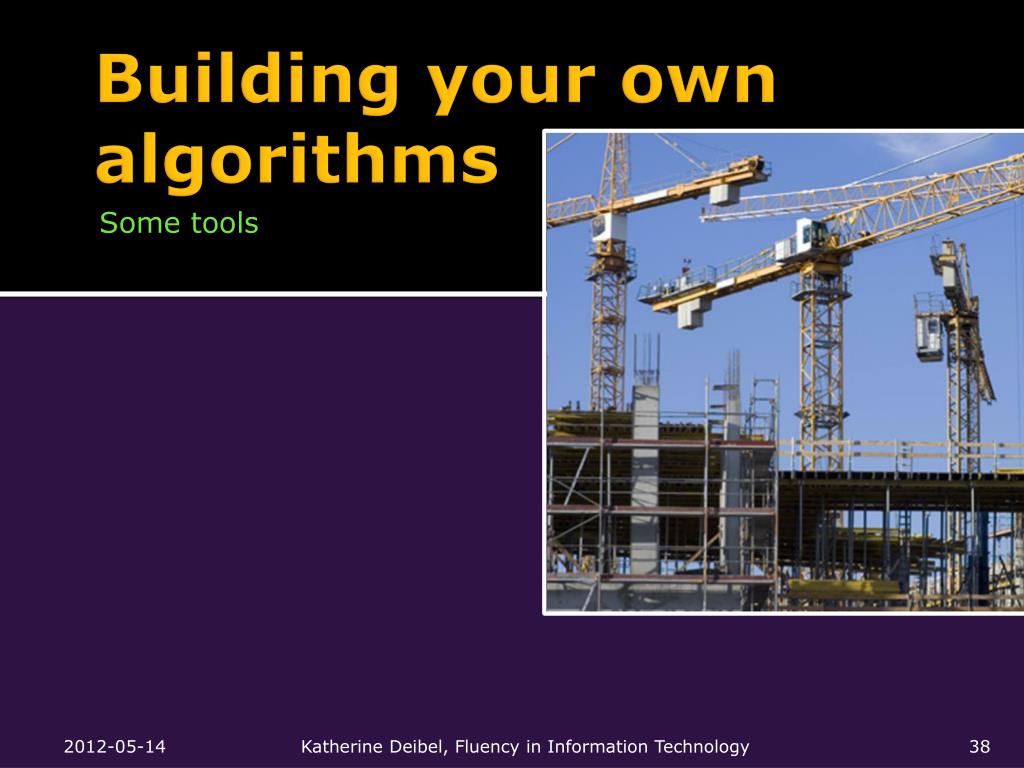 Building your own algorithms Some tools Katherine Deibel, Fluency in Information Technology