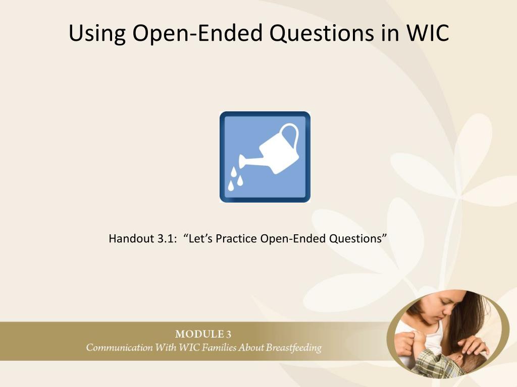 Using Open-Ended Questions in WIC Handout 3.1: “Let’s Practice Open-Ended Questions”