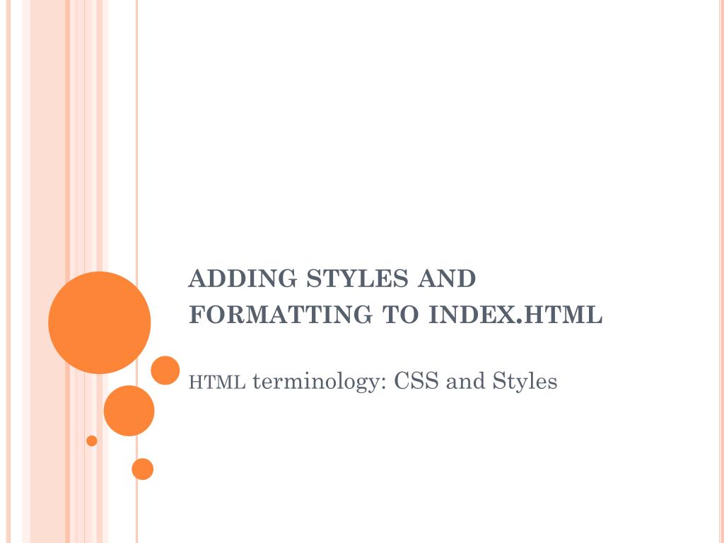 adding styles and formatting to index.htmlhtml terminology: CSS and Styles