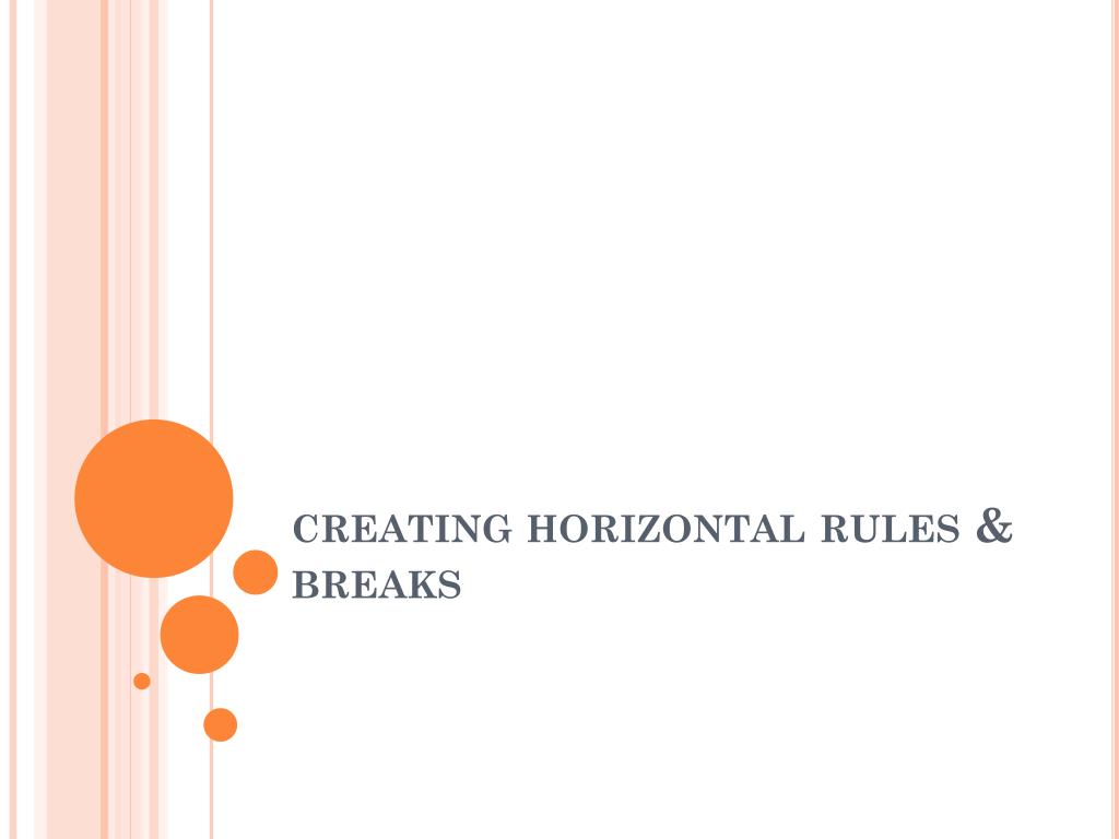 horizontal rule a.k.a. horizontal line • Pretty straight forward in Kompozer • put the cursor where you want your line to go • Insert – Horizontal Line