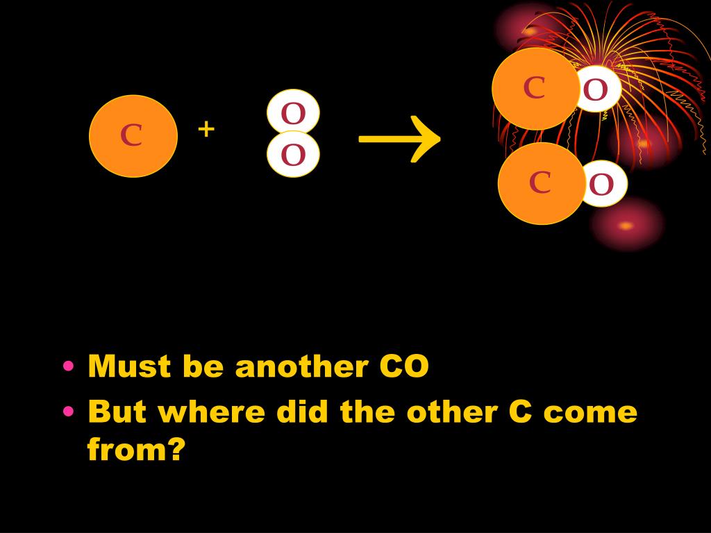C C O ® O + O • Must have started with two C • 2 C + O2® 2 CO C O C
