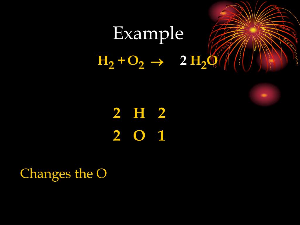 Example H2 + O2 ® 2 H2O 2 H 2 2 O 1 Changes the O