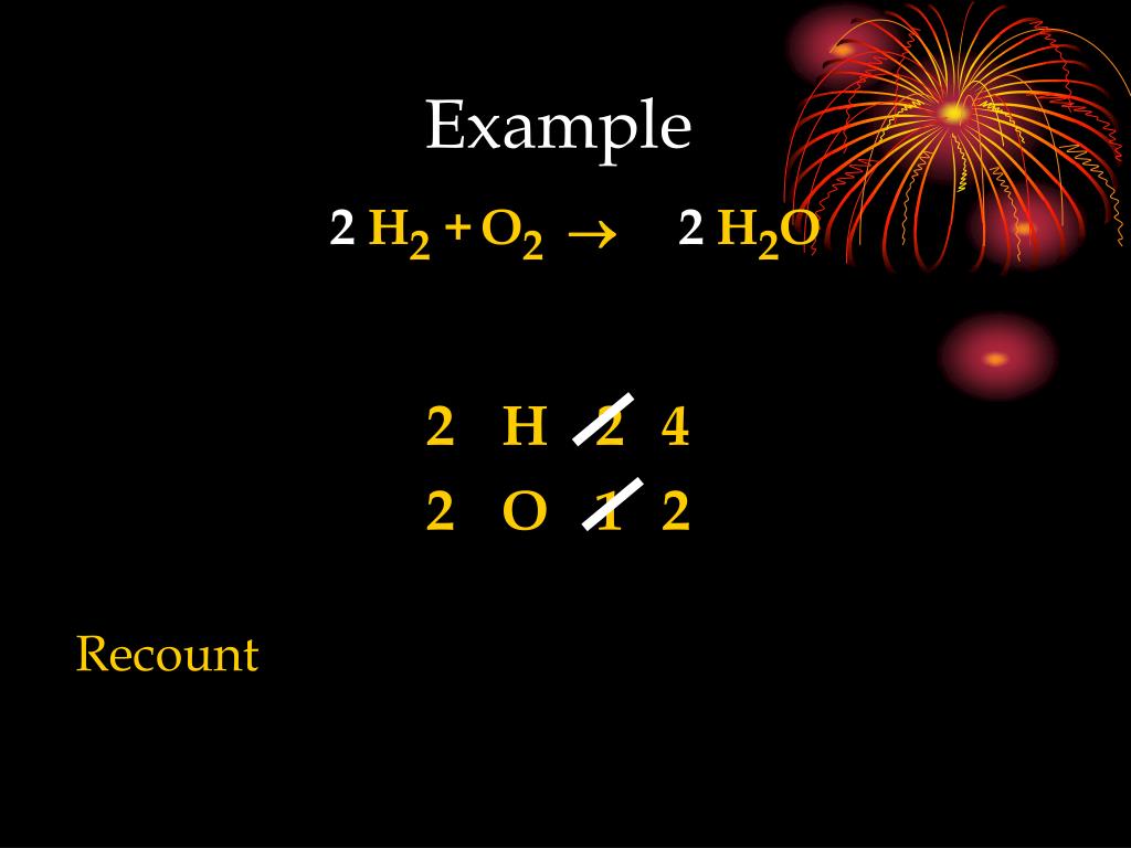 Example 2 H2 + O2 ® 2 H2O 2 H 2 4 2 O 1 2 Recount