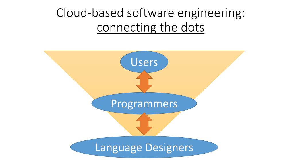 Cloud-based software engineering: connecting the dots Users Programmers Language Designers