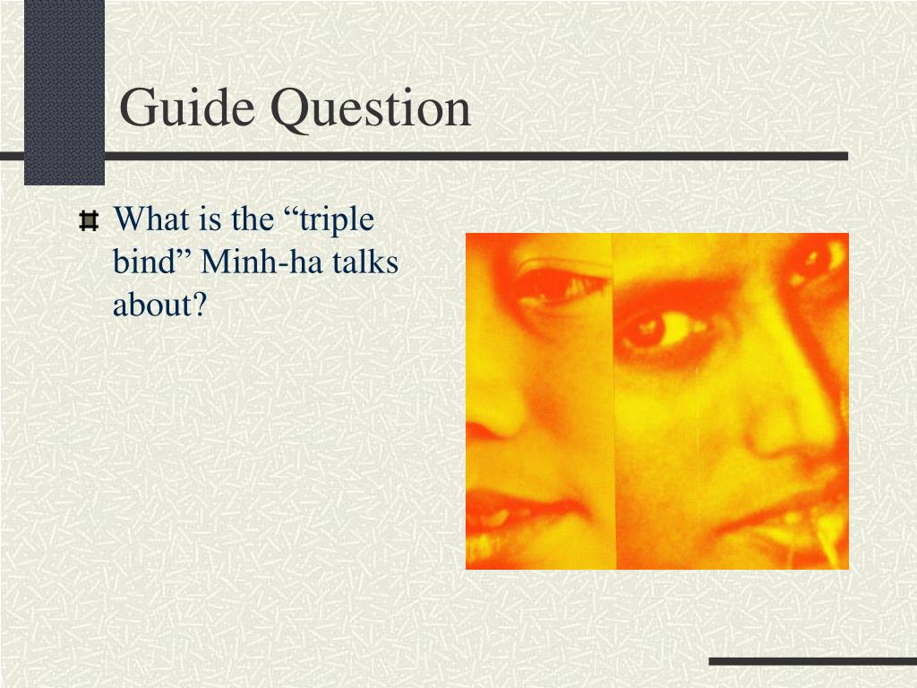 Guide Question • What is the “triple bind” Minh-ha talks about?