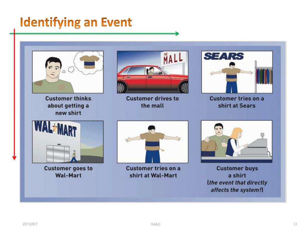 Documenting an event • Event table represents events and their details • Trigger: an occurrence that tells the system that an event has occurred • Source: an external agent or actor that supplies data to the system • Activity: behavior that the system performs when an event occurs • Response: an output, produced by the system that goes to a destination • Destination: an external agent or actor that receives data from the system