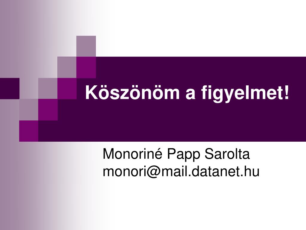 Köszönöm a figyelmet! Monoriné Papp Sarolta monori@mail.datanet.hu