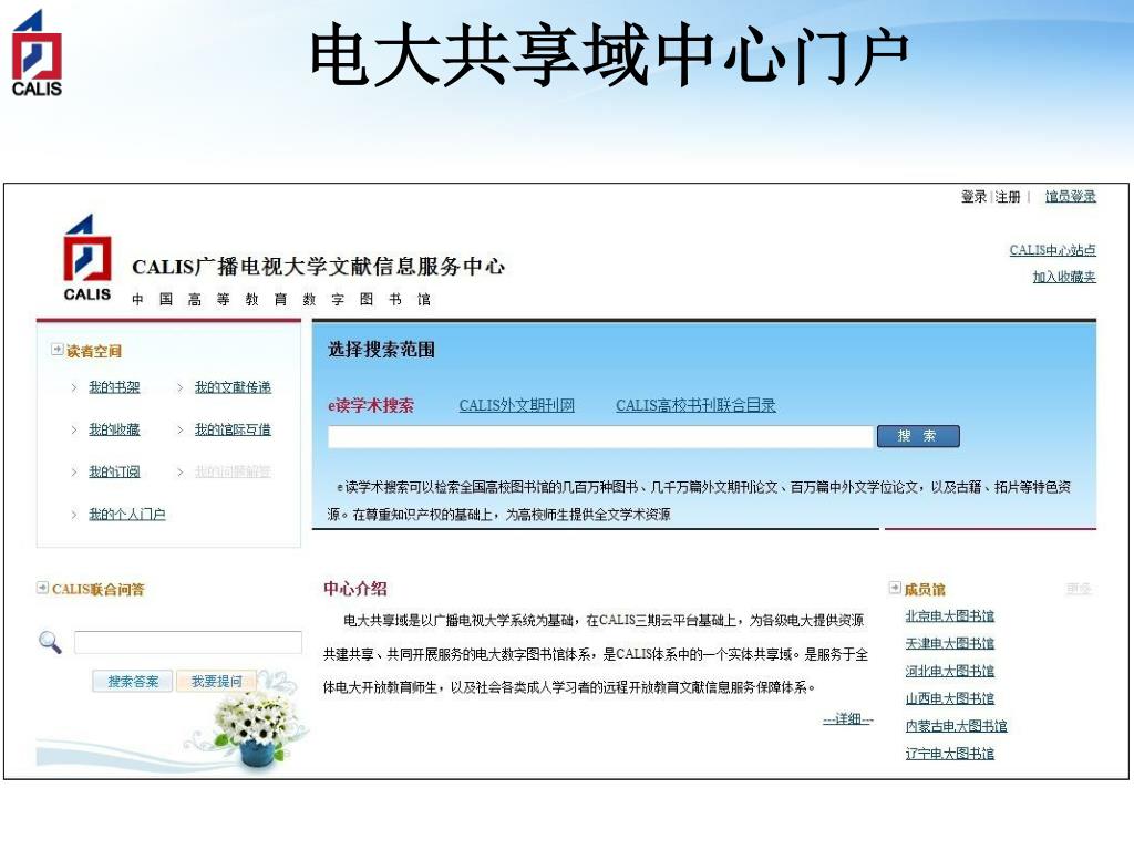 CALIS个性化门户(以重大为例)(同时整合图书馆、共享域、管理中心三级资源/服务)CALIS个性化门户(以重大为例)(同时整合图书馆、共享域、管理中心三级资源/服务)