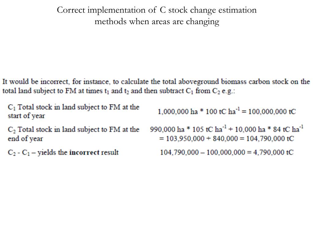 Be aware that: • Once in a land a carbon removal (i.e. a carbon stock increase) has been accounted for such a carbon stock must be tracked over time to ensure its permanence and any reversal must be accounted for at time when it occurs • Therefore, in a land where C stock net gains have been accounted for, subsequent C stock net losses associated with management cannot be excluded from accounting, e.g. by zeroing them. • When a net C stock loss is occurring in an area of CM and GM, for which in previous years a net C stock gain has been accounted for, and the Party is otherwise accounting for zero emissions and removals, because the area is not more subject to any CM/GM activity, the consequence is a failure in ensuring permanence in accounting and therefore such zeroing should not be allowed