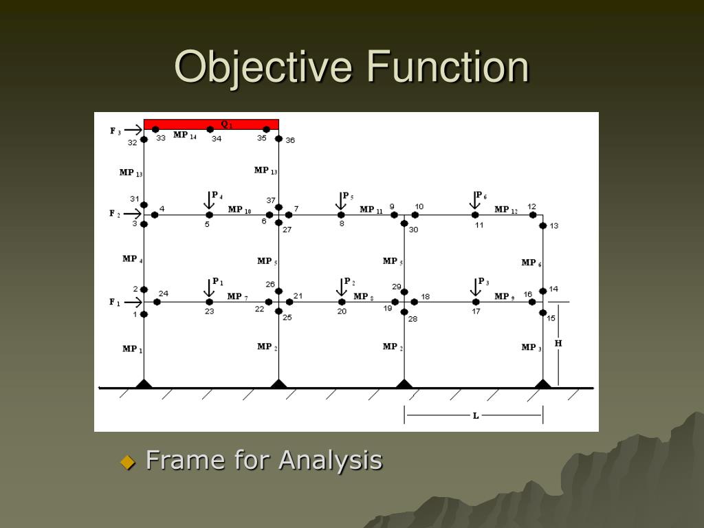 Objective Function • For a Single Cell Frame • Min Weight = 2H x Mp1 + L x Mp2 P P Mp2 Mp1